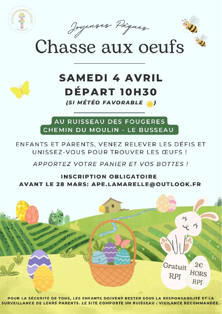 APE La Marelle : chasse aux oeufs - Le Busseau le samedi 04 avril 2026 À VOS AGENDAS ! |