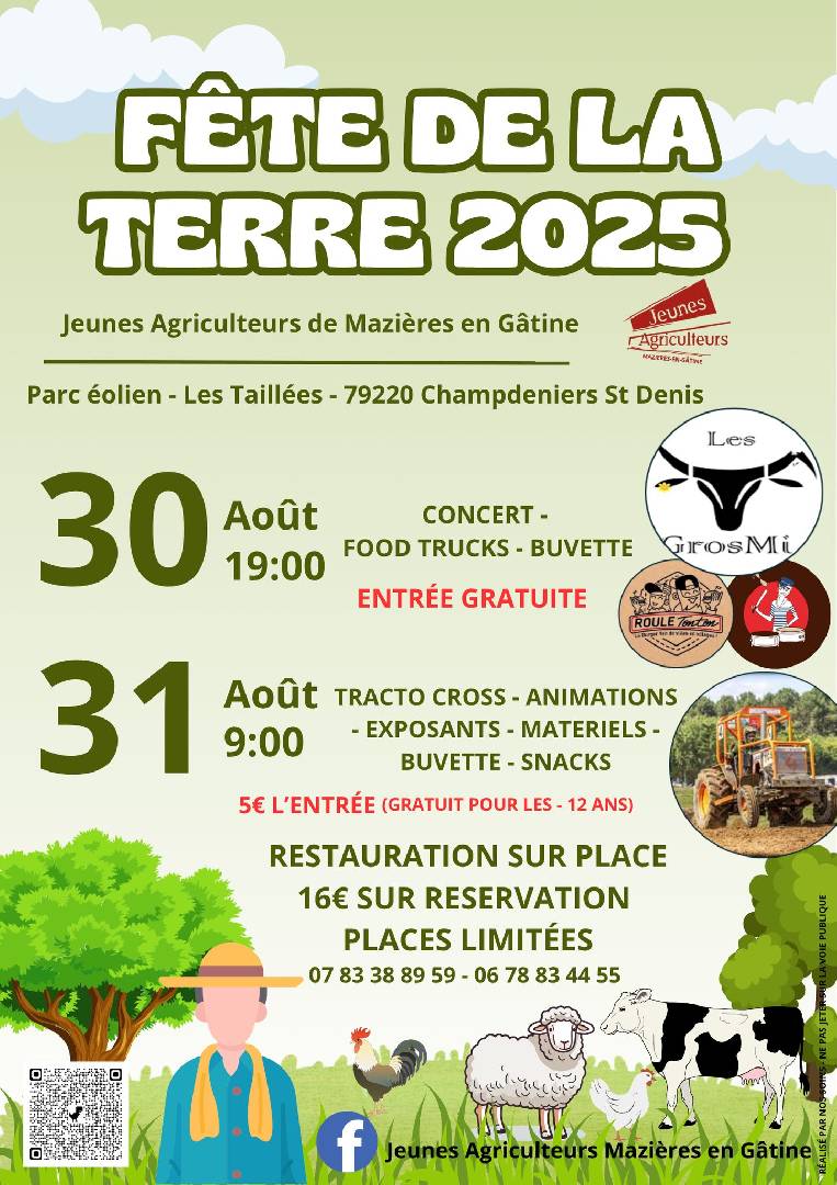 Fête de la terre - Champdeniers le samedi 30 août 2025 Retrouvez nous le 30 & 31 août 2025, pour notre fête de la Terre. Le 30 août à partir de 19h, soirée concert et food truck ! Ambiance assurée ! |