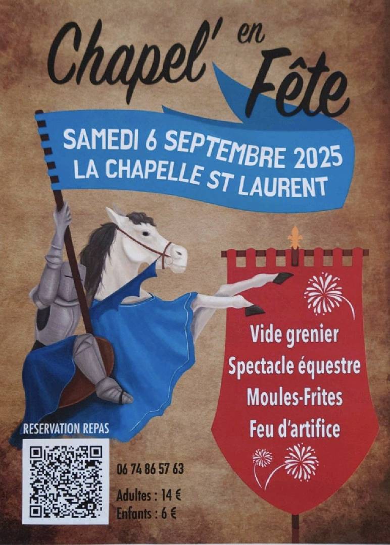 La Chapel' en Fête - La Chapelle Saint-Laurent le samedi 06 septembre 2025 Spectacle équestre à 14h00 16h00 et 18h00 |