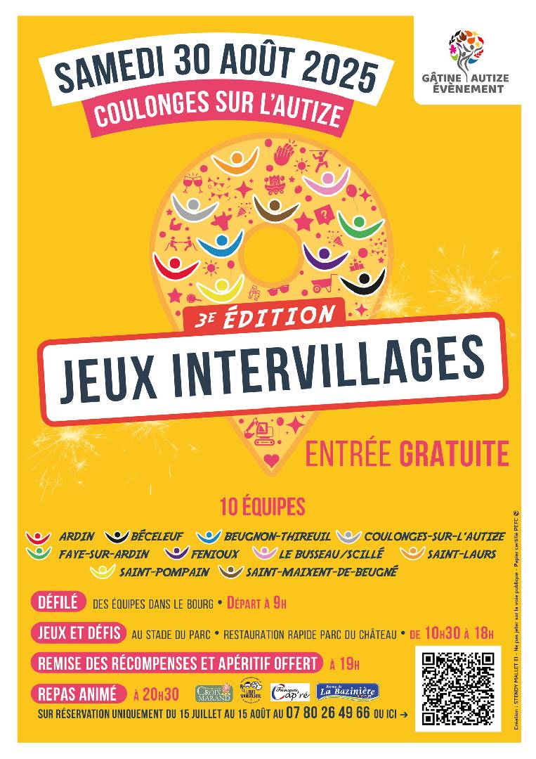 JEUX INTERVILLAGES - Coulonges Sur L'Autize le samedi 30 août 2025 L'INTERVILLAGES est de retour à Coulonges le samedi 30 août ! |