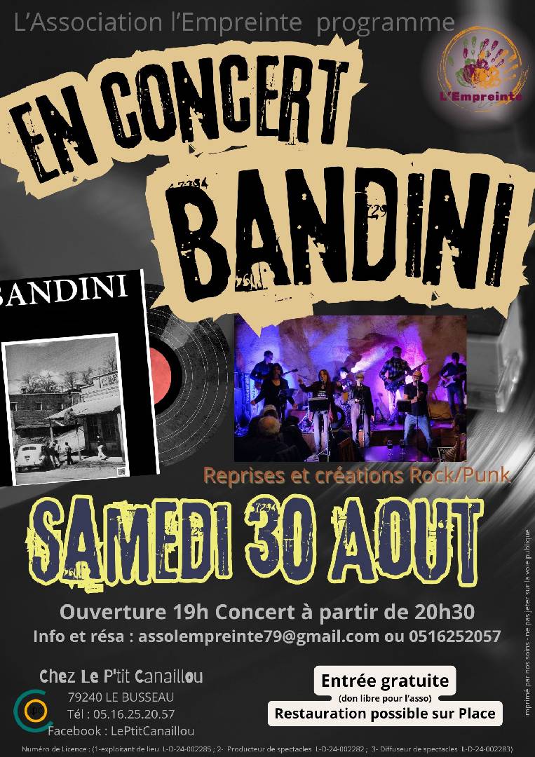 Les Bandini - Le Busseau le samedi 30 août 2025 Pour le dernier Weekend estival, les BANDINI sont de retour au P'tit Canaillou. |