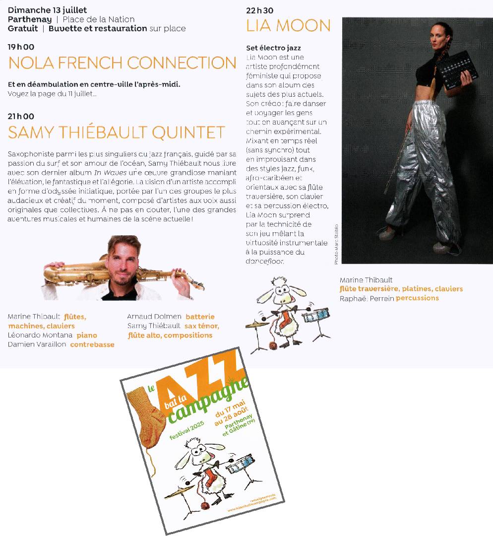 Nola French Connection - Samy Thiébault Quintet - Lia Moon - Parthenay le dimanche 13 juillet 2025 Dans la cadre de Le jazz bat la campagne |