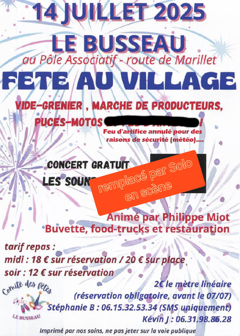 Fête au Busseau - Le Busseau le lundi 14 juillet 2025 Fête au Busseau le 14 juillet | |