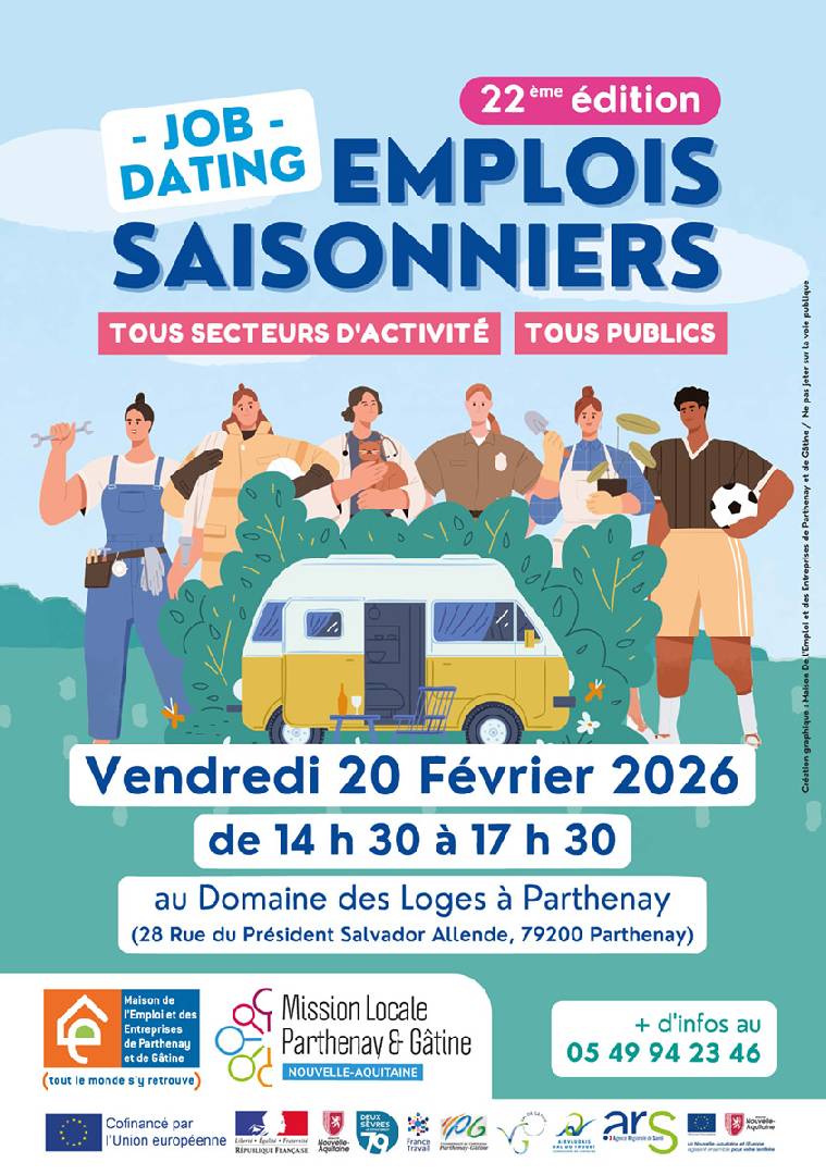 BIENTÔT Job Dating - Parthenay le vendredi 20 février 2026 Job Dating emplois saisonniers. A Parthenay le 20 février. |