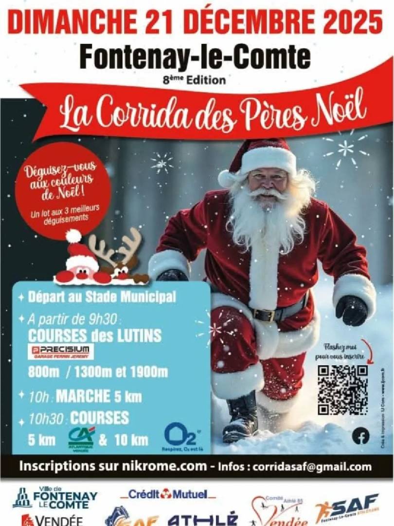 La corrida des Pères Noël - Fontenay Le Comte le dimanche 21 décembre 2025 La corrida des Pères Noël le 21 décembre 25 |