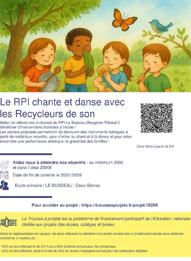 Le RPI chante et danse avec les Recycleurs de son - Le Busseau le lundi 05 janvier 2026 Le RPI chante et danse avec les Recycleurs de son. |