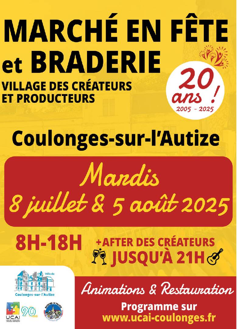 Marché en fête et braderie - Coulonges Sur L'Autize le mardi 05 août 2025 Braderie et village de créateurs et producteurs. |