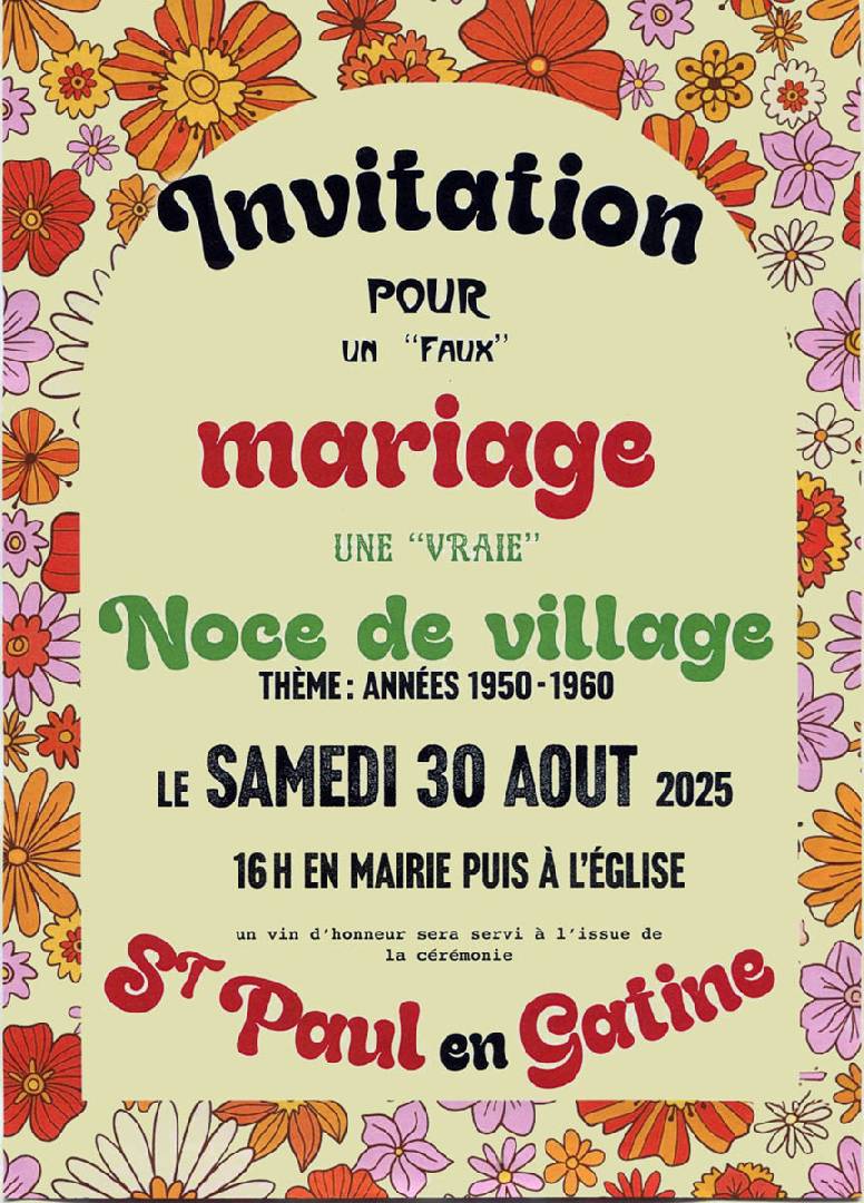 Noce de village - Saint Paul en Gâtine le samedi 30 août 2025 Faux mariage pour une vraie noce de village, façon 1950 - 1960 |