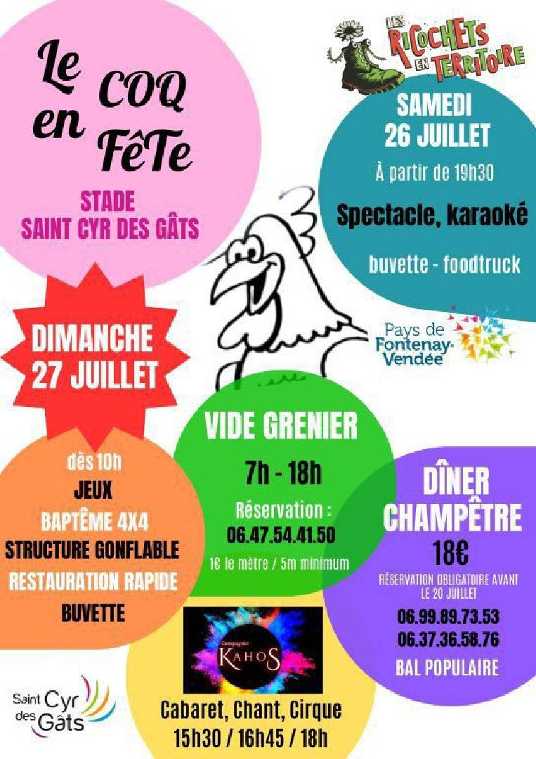 Vide grenier - Saint-Cyr des Gâts le dimanche 27 juillet 2025 L'association Happy sera présente au vide grenier ce DIMANCHE 27/07/25 à 85410 St Cyr des Gâts |